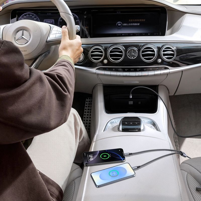 One power source, two devices – a practical solution for charging your phone and laptop simultaneously, without the need to use two cables.