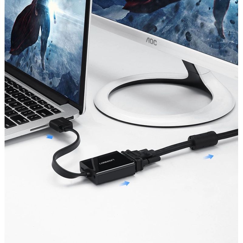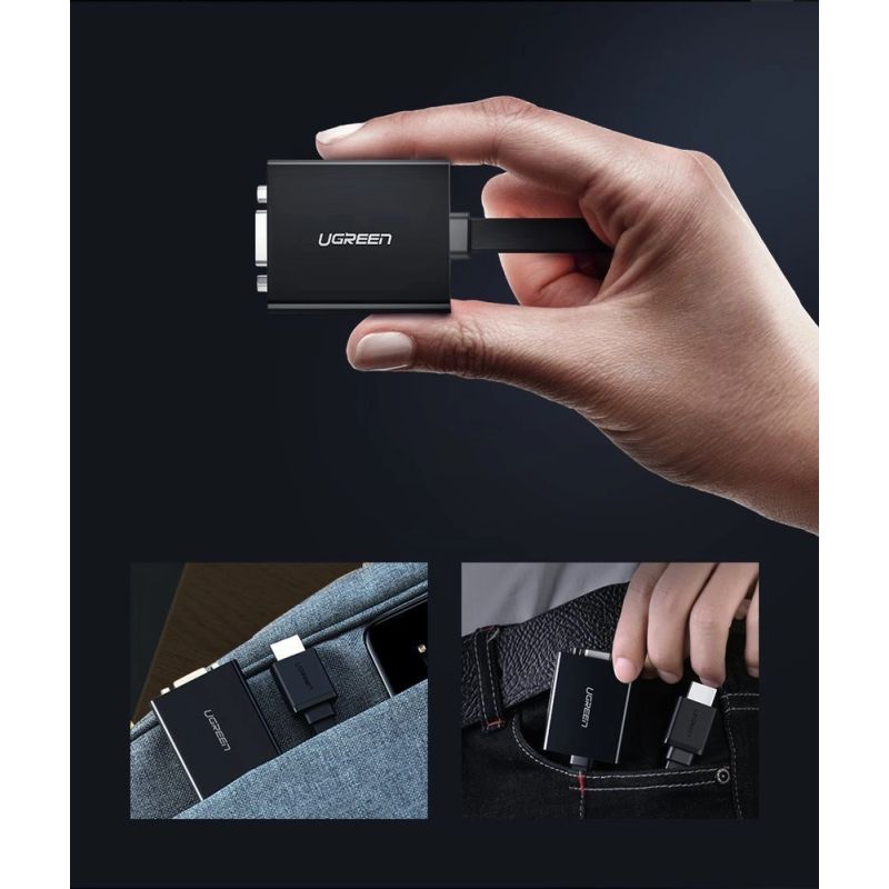 Ugreen HD Converter is an HDMI to VGA adapter with additional micro USB (for power) and audio AUX 3.5mm mini jack connectors that allows you to connect a new laptop, console or media player to an older TV, monitor or projector. A great gadget that allows you to use the latest mobile equipment on older receivers. You don't have to buy the latest TV model to send a high-quality signal from your notebook to it.
