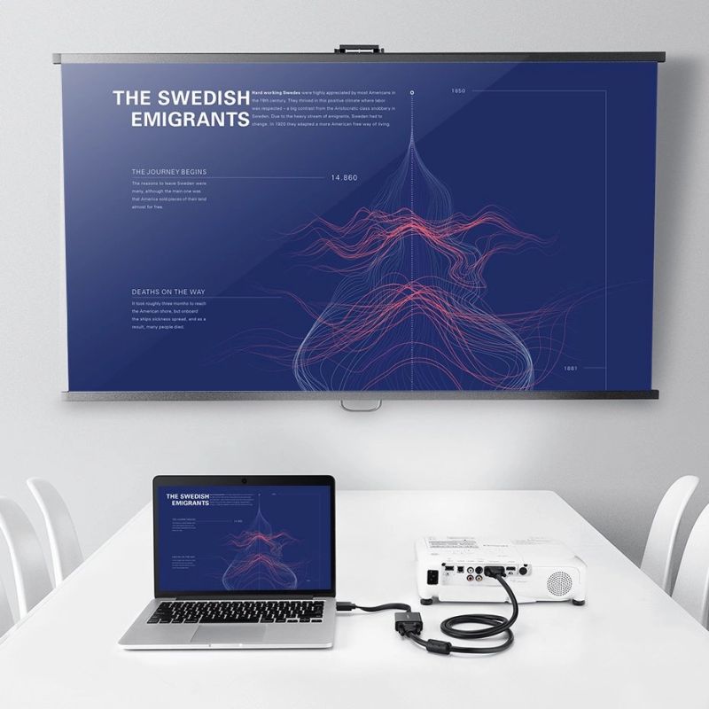 Thanks to the adapter, you can connect your TV or projector to your computer and enjoy a truly cinematic experience when watching movies at home . In addition, the converter will also be perfect for your workplace, when you display your presentation in a large format and high resolution at a business meeting. It won't matter that your boss skimped on a newer projector with an HDMI connector. You'll do just fine without it.