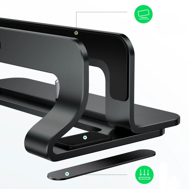 If you often work on your laptop, connecting an external screen and keyboard to it, the presented stand will certainly allow you to improve the ergonomics and comfort of using the equipment. It will also save space on the desk and allow you to keep order. You can forget about tangled cables and the lack of space for a cup of coffee or notebook. Made of solid zinc alloy, it holds the laptop upright, taking up little space. It is also perfect for storing a portable computer when you are not using it.