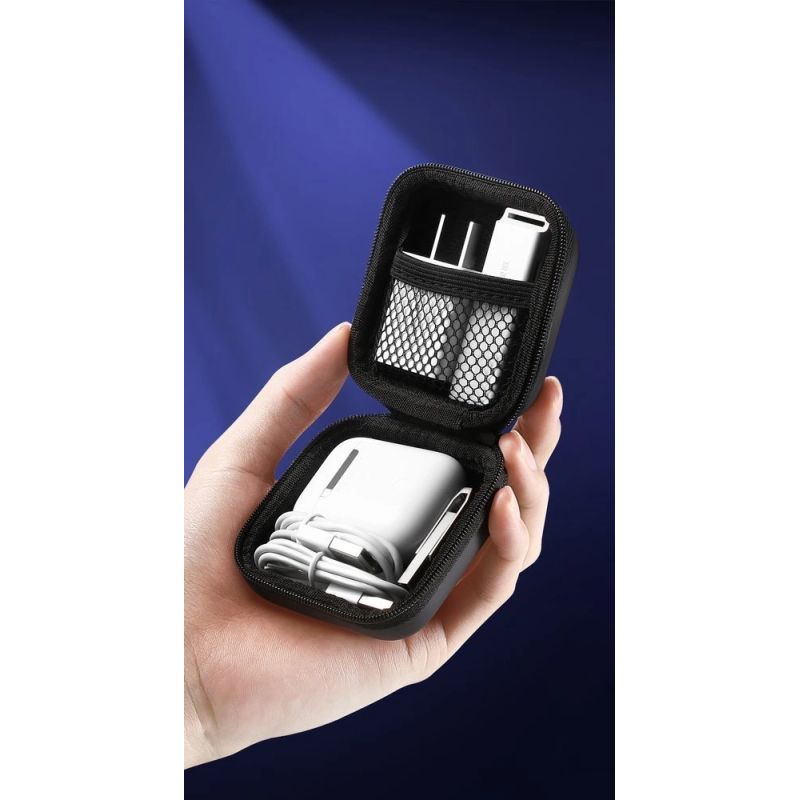 Ugreen case designed for wired and wireless headphones. You can easily fit AirPods headphones with a charging cable and wall charger, USB flash drive or other small electronic accessories in it. The box is shockproof and splashproof. The case comes with a carabiner on which you can hang it on a belt or on a bag or backpack.