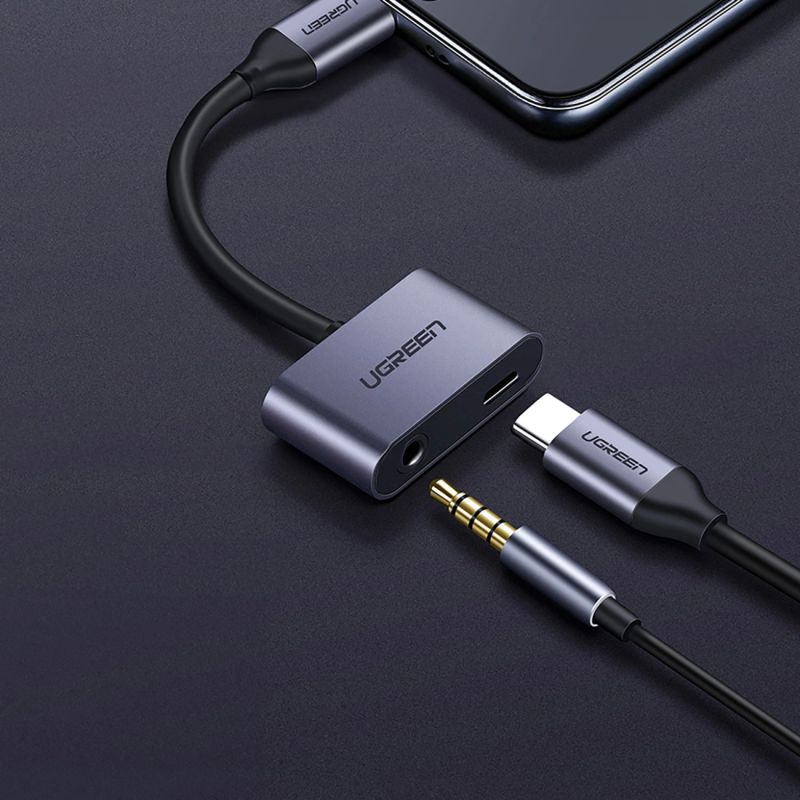 - It is compatible with phones, tablets and laptops that have a USB-C connector . The Ugreen CM193 adapter extends the USB-C connector to a 3.5mm mini jack audio port and a USB-C charging port.