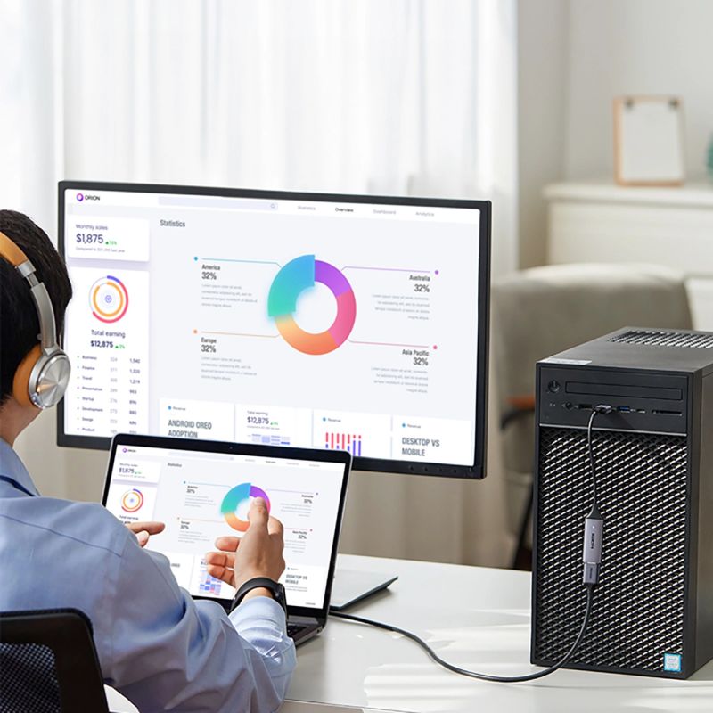The Ugreen CM489 capture card lets you connect camcorders, cameras, consoles, and other HDMI-equipped devices to your laptop, computer, tablet, or phone via USB-A or USB-C. This facilitates convenient video streaming and recording for a variety of applications.