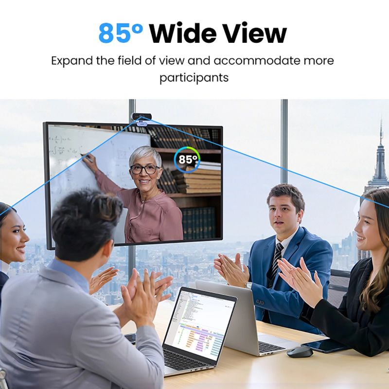 The Ugreen CM678 camera has a wide viewing angle of 85 degrees - it is an ideal solution for group meetings and family video calls. Additionally, the possibility of 360-degree adjustment and three installation options (tabletop, tripod or monitor) offer great convenience, allowing you to adjust the camera setting to any situation.