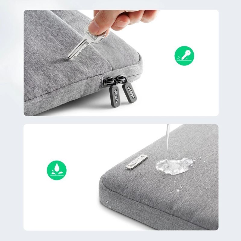 The Ugreen bag consists of three layers. The outer layer provides a high level of protection against moisture or water damage. In case of rain, your laptop will be safe! The aesthetic appearance of the gadget is assured for a long time, but it is not susceptible to scratches.