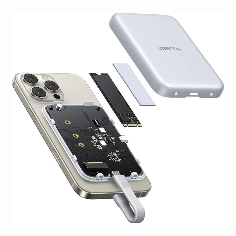 The Ugreen magnetic enclosure for M.2 NVMe drives is a modern and convenient solution for those looking to expand the storage capacity of their mobile devices. A strong magnetic module allows for convenient attachment to the latest iPhone models (and phones with a magnetic sticker), while the fast USB 3.2 Gen2 interface provides transfer speeds of up to 10 Gb/s. It's the perfect tool for video creators, photographers, and anyone who needs fast, mobile data storage.