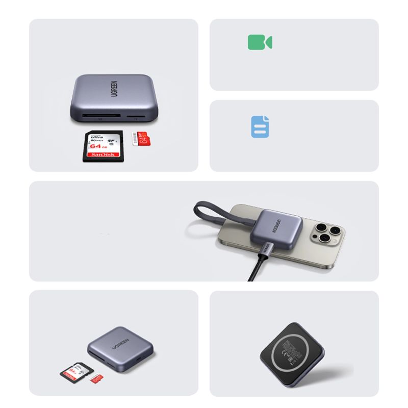 Ugreen Magnetic Memory Card Reader + 100W PD 3in1 Charger - Gray