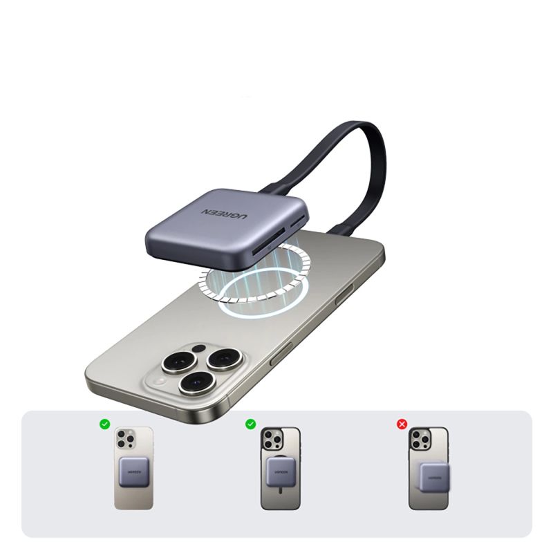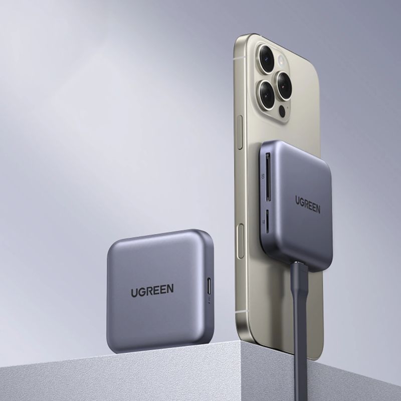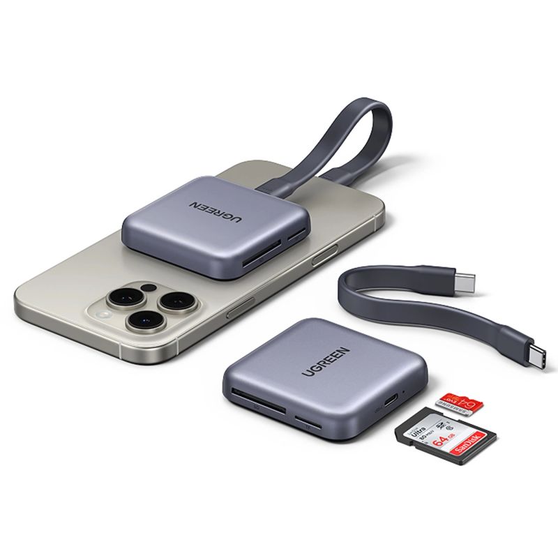 Ugreen Magnetic Memory Card Reader + USB-C 100W PD 3-in-1 Port - Gray