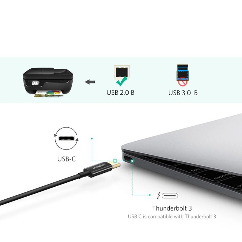 - It allows you to easily and quickly connect the printer to other devices . The Ugreen US241 cable has USB-B and USB-C connectors.