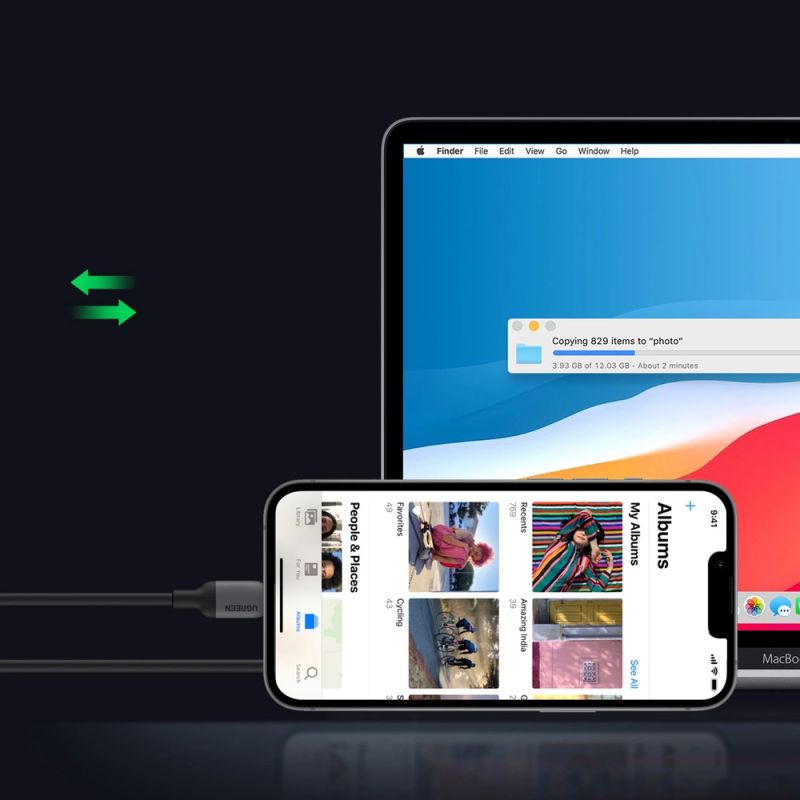 USB Type C to Lightning cable with the MFI (Made for iPhone) certificate , awarded by Apple only to proven, top-quality accessories. The cable is made of strong material and ends with a plug in a reinforced housing. It is perfect for both data transfer and charging our equipment. Add to that high durability, stylish design and we have a complete picture of the new Ugreen product.