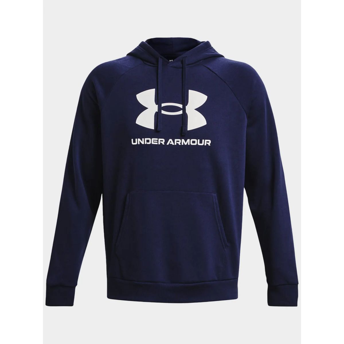 The Under Armour men's kangaroo-style sweatshirt with a large logo is a striking addition to any men's wardrobe. Available in a variety of colors, it's easy to match to your individual preferences. It's a great choice for men who value style and comfort in everyday activities.