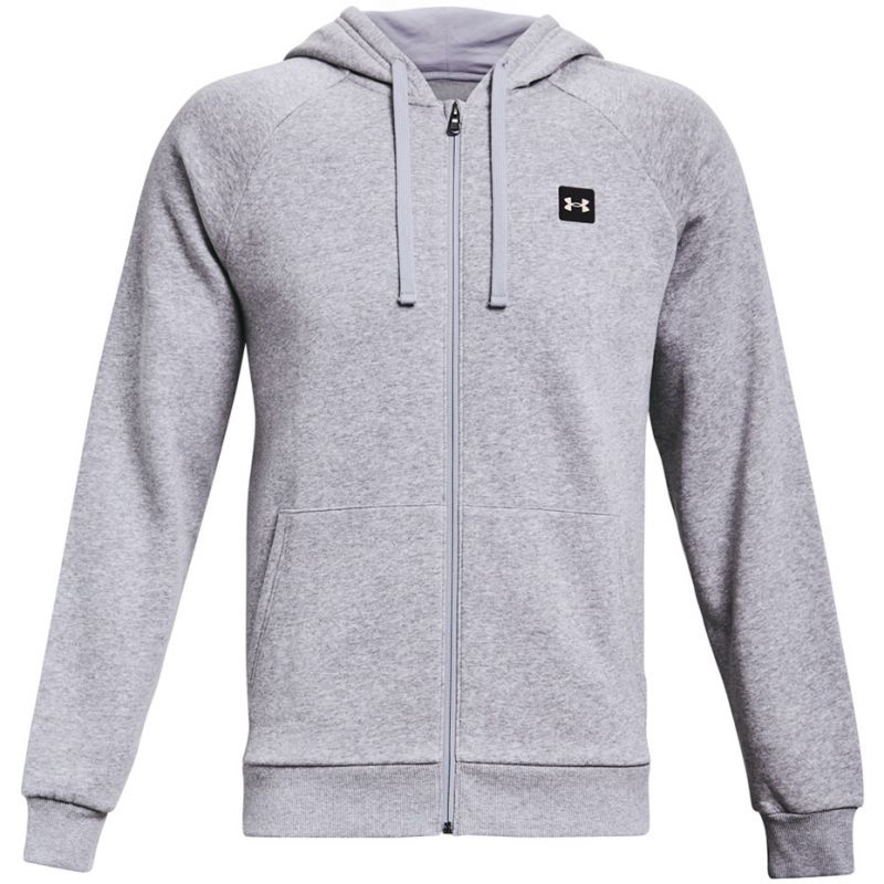 This men's Under Armour sweatshirt is a versatile everyday option. It features a comfortable construction combining breathable cotton and durable polyester. Its classic cut allows for unrestricted movement. A full-length zipper provides a secure fit. An integrated drawstring hood protects your head from harsh weather conditions. Side pockets provide storage for small items. Elastic cuffs and hem are stylishly finished. It's available in gray with a subtle brand logo.