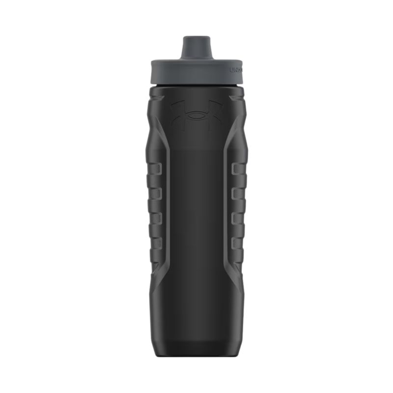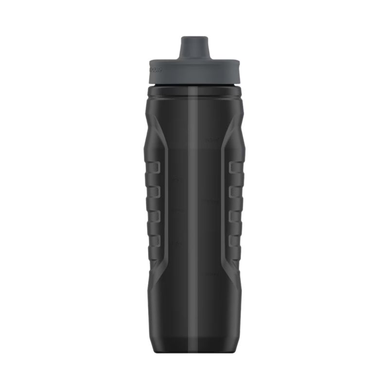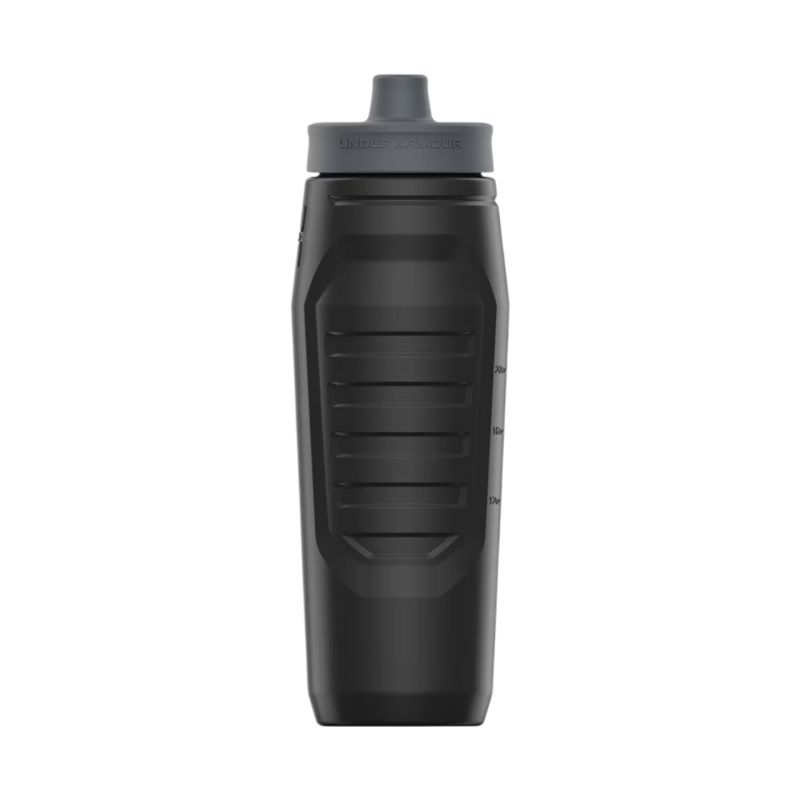 Under Armour Sideline Squeeze 950 ml Black Water Bottle UA70090 036 The Under Armour sports bottle allows you to monitor your body's proper hydration. Specifications: · 950 ml capacity · Ergonomic spout · Measuring in ounces and milliliters · Lid with a one-way valve so you can quickly hydrate, even on the go · Materials used are BPA and lead-free · Materials: polypropylene lid, silicone ring, silicone nozzle, HDPE body