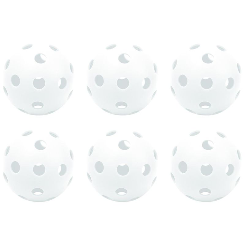 The UNIHOC 6-PACK ENERO WHITE GAME BALL is a versatile set designed for recreational play and everyday training. It's perfect not only for floorball but also for other physical activities, such as paddle games or pickleball. Perfect for outdoor family games.