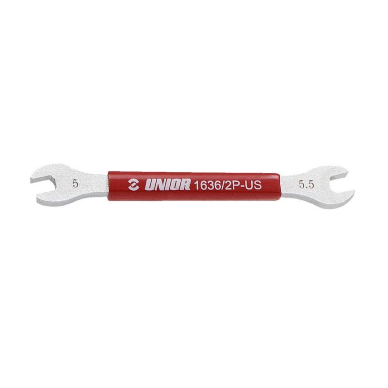 This wrench is designed for centering spokes with 5 mm and 5.5 mm spoke ends. The plastic-coated center section of the wrench provides comfort when tightening and loosening the spokes. The wrench is 100 mm long.