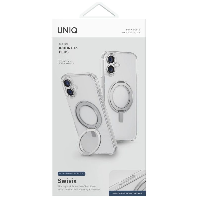 Uniq Swivix 360 Rotating Kickstand Case for iPhone 16 Plus - Transparent