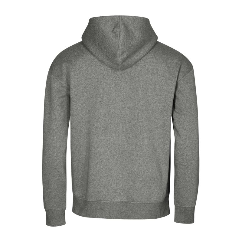 Terry, brushed inside, 80% organic cotton, 20% recycled polyester (GOTS), unlabelled - ready for rebranding, relaxed fit with side seams, lined hood with drawstring, size-neutral back hem label, inner back hem with tape, dropped shoulder seams, kangaroo pocket, hem, cuffs and hem in 2:2 rib knit with 5% elastane, brushed inside