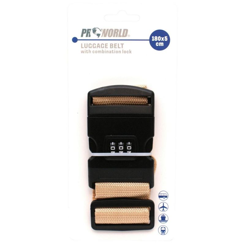 The PROWORLD BEIGE UNIVERSAL 180x5CM COMBINATION SUITCASE SECURITY STRAP is a must-have for any trip! Durable material, a sturdy buckle, and a stylish beige color make this belt not only functional but also elegant. Perfect for both short trips and long journeys by plane, train, or bus.