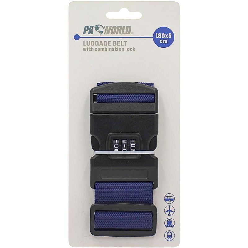 The PROWORLD NAVY BLUE UNIVERSAL SUITCASE SECURITY STRAP 180x5CM WITH COMBINATION is a must-have accessory for any trip! Durable material, a sturdy buckle, and a stylish beige color make this belt not only functional but also elegant. Perfect for both short trips and long journeys by plane, train, or bus.