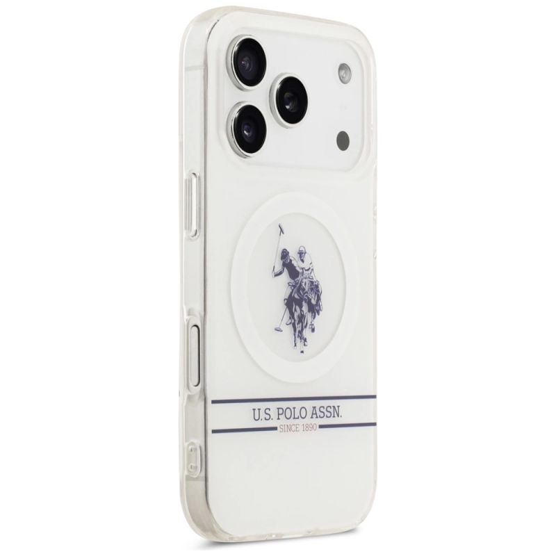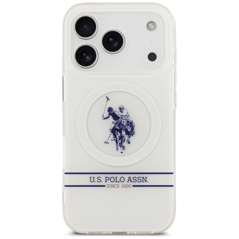 8. US Polo DH and Bottom Stripe Logo MagSafe Case for iPhone 17 Pro - White