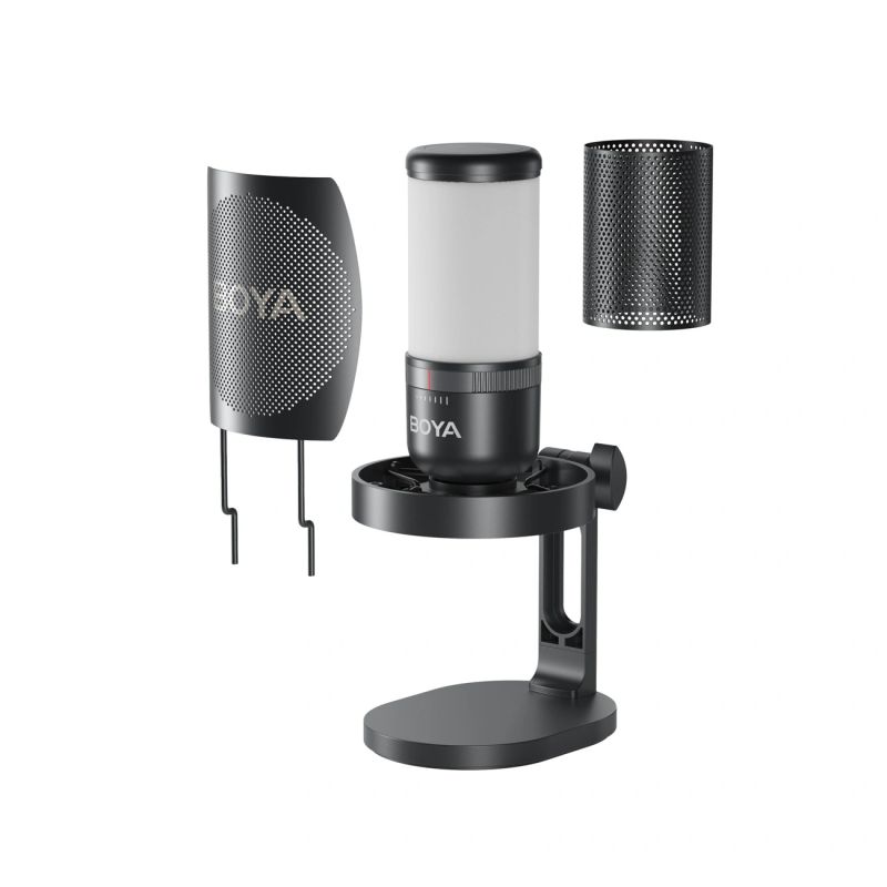The BOYA K3 is a USB microphone designed for high-quality recordings in home studios, streaming, and podcasts. It offers 48 kHz/16-bit audio recording and a supercardioid polar pattern that focuses on the voice and reduces ambient noise. Built-in noise reduction and a mute function make it easy to monitor recordings in real time. The microphone also features RGB backlighting and a gain control, streamlining recording and giving you greater control over your sound.