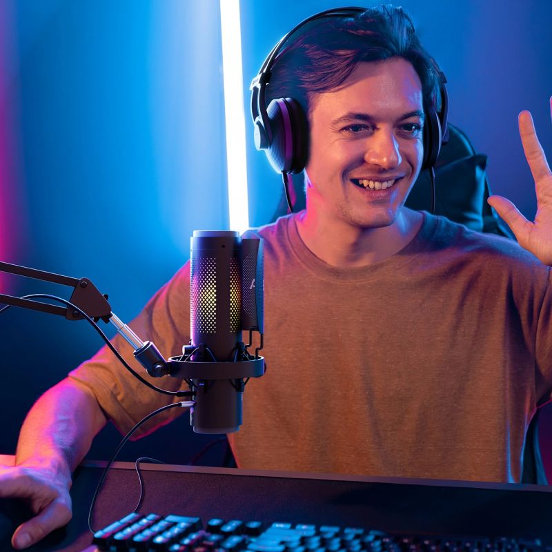 Lighting effects allow you to match the microphone's appearance to your workstation or streaming style.