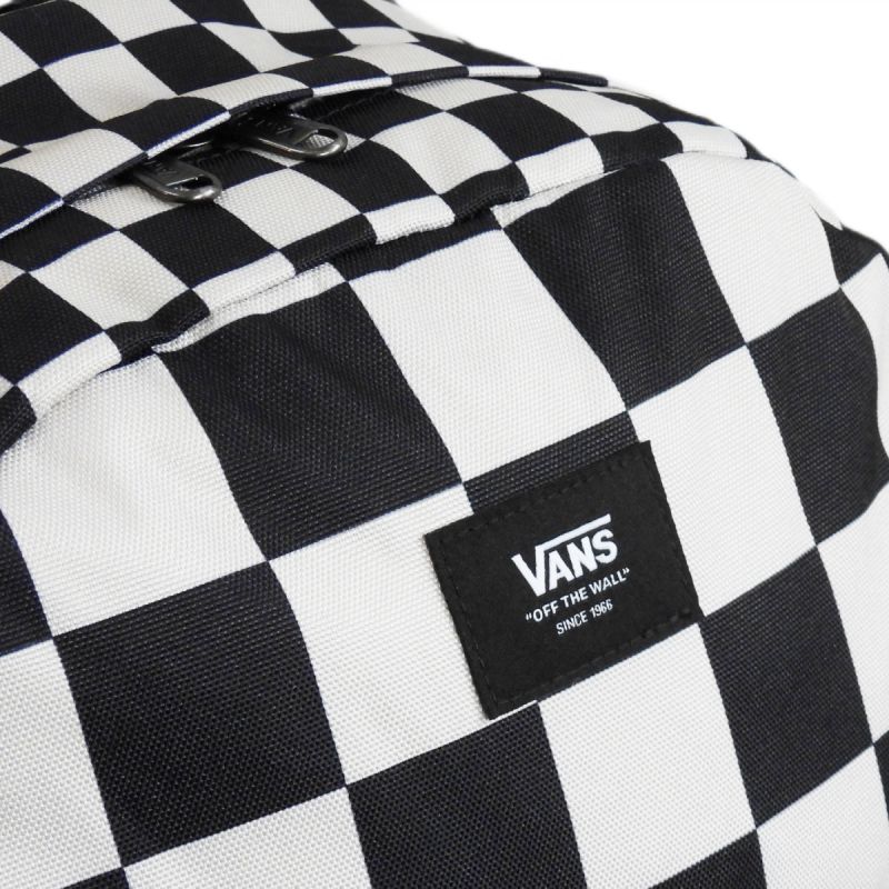 The front of the backpack features a patch with the characteristic Vans OFF THE WALL logo.
