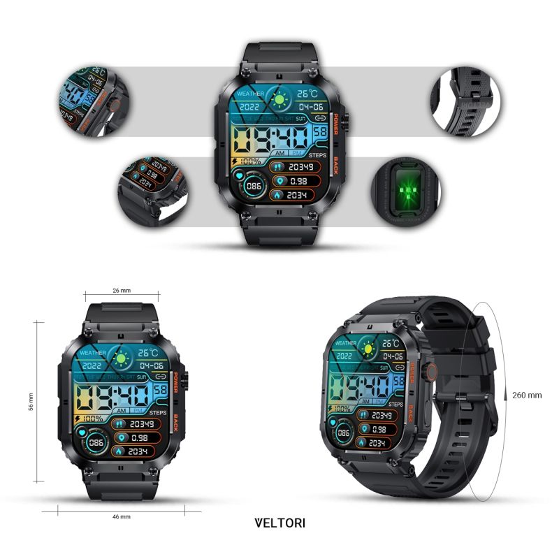 Thanks to the sensor, you can measure or take measurements at any time: blood pressure, heart rate , or oxygen saturation (oxygen content in your blood). Monitor your results during any physical activity. Whether you're cycling, running, or simply working or relaxing, your Veltori smartwatch will become your personal assistant, taking care of your health every day.