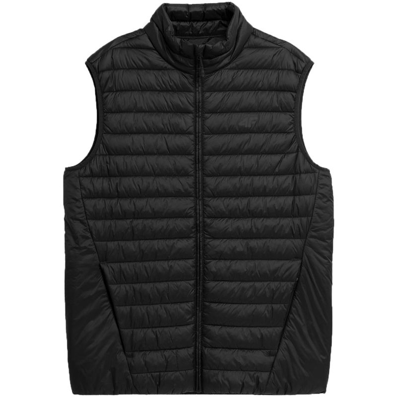 Men's 4F M062 Deep Black Vest 4FAW23TVESM062 20S This men's 4F vest is perfect for everyday wear. Unlined. Zippered side pockets. Comfortable collar for wind protection. Internal elastic at the bottom. Armholes finished with elastic trim. Hydrophobic impregnation of the material limits the absorption of external moisture. Main zipper with internal wind flap and chin guard. Synthetic down filling ensures optimal thermal comfort during use. Technical data: Main material: 100% polyester Main material: 100% additional Filling: 100% polyester