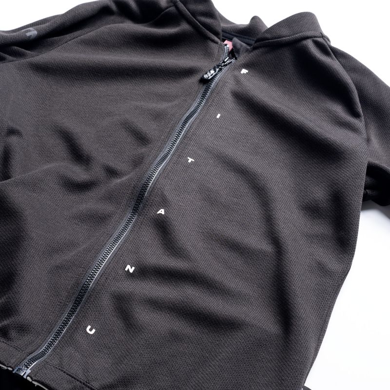 The fitted cut and extended back of the sweatshirt fit well while riding, protecting the lumbar region.