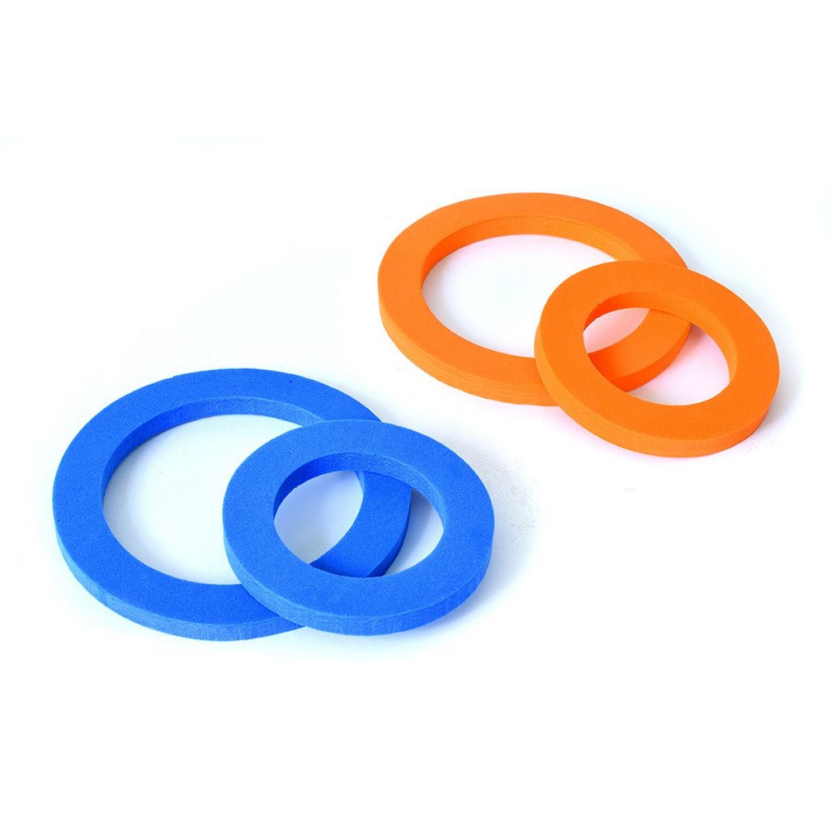 - Set includes: 6 small and 6 large throwing discs, 5 posts, base