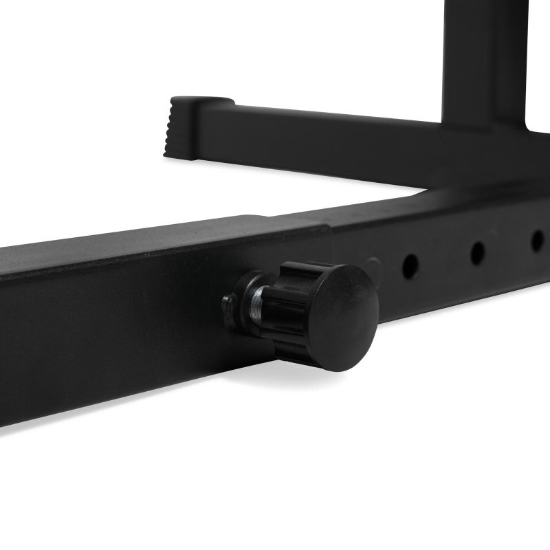 The VirtuFit Adjustable Squat Rack is easy to assemble, easy to use, and easy to store when finished. This squat rack is compact enough to fit in a small home fitness studio.