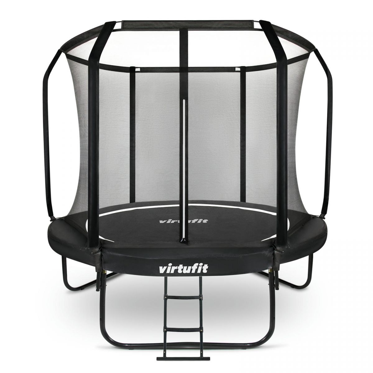 The VIRTUFIT PREMIUM TRAMPOLINE WITH SAFETY NET, BLACK, 251 CM is professional training equipment from VirtuFit, designed for effective exercise in both home and commercial settings. The product was designed based on the latest trends in the fitness industry, combining innovative solutions with practicality. A fitness trampoline is an excellent way to improve fitness, coordination, and balance while having fun. Jumping on a trampoline burns calories more effectively than traditional forms of cardio. The solid construction ensures stability and safety during intense workouts. Modern technical solutions guarantee comfort and long product life. Made of polypropylene, it ensures exceptional durability and resistance to intensive use. The ergonomic design was developed in collaboration with physiotherapists and personal trainers. The product meets all safety standards applicable in the European Union.
