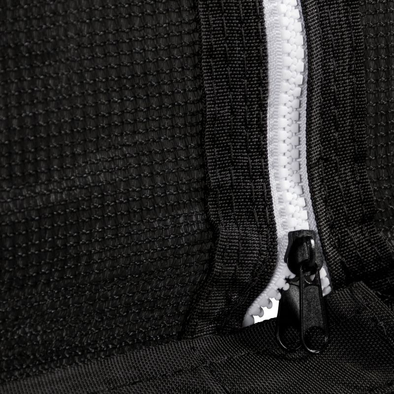 Want jumping to be not only fun but also safe? The entire structure is solid black, giving it a stylish look and blending harmoniously into any garden. Waterproof and UV-resistant materials ensure durability and weather resistance, allowing you to leave the trampoline outdoors without worrying about damage. A protective net with a double zipper provides reliable protection, while a wide, foam-filled cover protects against contact with the metal springs. The springs and metal components are also protected against corrosion. Moisture- and UV-resistant materials allow you to leave the trampoline outdoors all season long.
