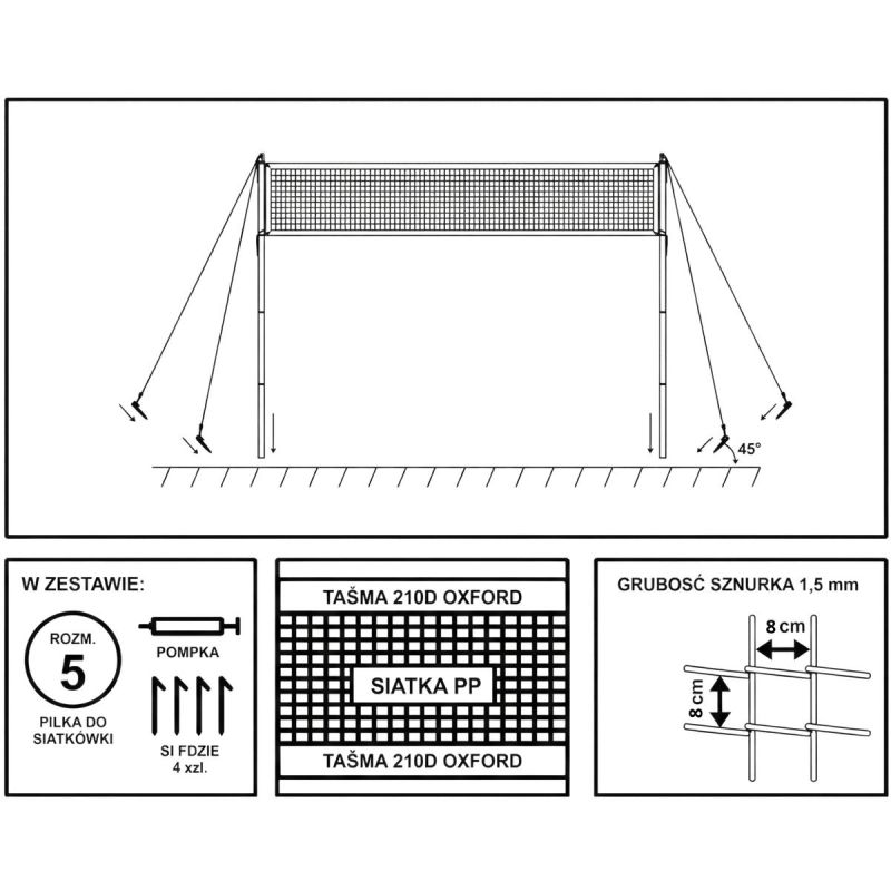 COMPLETE SET - The set includes a size 5 volleyball (204 mm diameter), a PP pump, and 4 plastic pegs. This eliminates the need to purchase additional accessories. Everything you need is in one package.