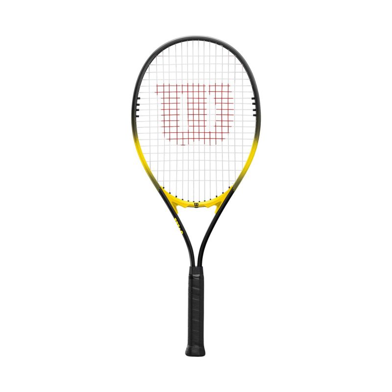 Wilson Energy XL TNS RKT 3 4 3/8 Tennis Racket, Black and Yellow WR199310U3. This Wilson tennis racket is perfect for beginners or occasional players. This model offers plenty of power and dynamics. The enlarged head ensures comfort and proper power. The lightweight design doesn't burden the arm. Slightly longer than standard models, the racket provides greater reach. AirLite Alloy technology reduces the racket's weight while maintaining durability. V-Matrix technology additionally reinforces the racket's structure and frame profile to increase power. Stop Shock Sleeves, which are extended eyelets at the 3 and 9 o'clock positions, reduce racket vibration during impact. The racket is factory-strung. Technical data: Handle size: L3 (4 3/8) Material: aluminum Weight (unstrung): 274 g Racket length: 69.9 cm / 27.5 in String pattern: 16x19 in Balance (unstrung): 32.0 cm Head area: 723 cm² / 112 in² Grip: factory Factory-strung: yes Cover included: no
