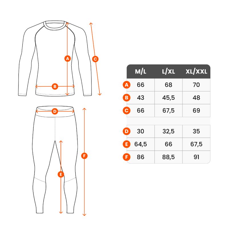 Men's Thermal Underwear Set - WINDSTAR. This men's thermal underwear set is made of stretchy fabrics that provide thermal insulation and effective moisture management. An ergonomic cut, flat seams, and soft material guarantee complete freedom of movement and comfort in all conditions. Introduction: Thermal underwear is an essential wardrobe item for every man who values comfort during activities on colder days. The WINDSTAR underwear set is made of a soft and stretchy fiber blend (65% polypropylene, 30% polyamide, 5% elastane), providing a perfect fit without restricting movement. It effectively retains heat while wicking away moisture. Flat seams eliminate the risk of chafing, making it ideal for both everyday wear and intense physical activity – on the slopes, in the mountains, or during outdoor training. Key Features: Thermal insulation and moisture management – maintain optimal body temperature and dryness even during intense exertion. Ergonomic cut – adapts to the body without restricting freedom of movement. Flat seams protect against chafing and improve comfort. Lightweight and flexible – the material is pleasant to the touch, yet durable and flexible. Versatile – ideal under sportswear, for everyday use on cooler days, and during outdoor activities. Detailed description: This men's thermal underwear set is designed for active people who need reliable protection against cold and moisture. The use of a blend of synthetic fibers means the material dries quickly and maintains its insulating properties. The fitted cut ensures complete freedom of movement, which is important for skiing, winter running, and long mountain hikes. Flat seams effectively eliminate the risk of chafing, and the delicate texture of the fabric makes the underwear comfortable even after long hours of wear. It's a universal choice for anyone looking for a reliable base layer for colder days. Technical data and parameters Material: 65% polypropylene, 30% polyamide, 5% elastane Cut: fitted, ergonomic Seams: flatlock, anti-chafing Properties: thermal insulation, moisture wicking, elasticity Use and care Wash at a maximum of 30°C, inside out. Avoid using bleach and harsh detergents. Do not tumble dry, preferably dry flat. Do not iron. We recommend washing after each intense workout to keep the material fresh. Frequently asked questions Q: Is thermal underwear only suitable for sports? A: No – it will work both during physical activity and as an additional layer on colder days. Q: Does the material dry quickly? A: Yes, thanks to the polypropylene and polyamide content, the underwear dries faster than cotton. Q: Does the cut restrict movement? A: No – the ergonomic fit and stretchy material guarantee complete freedom. Q: Is this set suitable for skiing? A: Yes, it's a great base layer under ski clothing. Safety information: After conducting a risk analysis related to the use of the Product and based on the analysis of the potential hazards associated with the use of the Product, pursuant to Article 9(7) of Regulation (EU) 2023/988 of the European Parliament and of the Council of 10 May 2023 on general product safety, amending Regulation (EU) No 1025/2012 of the European Parliament and of the Council and Directive (EU) 2020/1828 of the European Parliament and of the Council and repealing Directive 2001/95/EC of the European Parliament and of the Council and Council Directive 87/357/EEC, it is concluded that the Product can be used safely and in the manner intended by the Manufacturer without instructions and information on the safety of the Product, due to the absence of obvious risks and hazards related to the use of the Product.