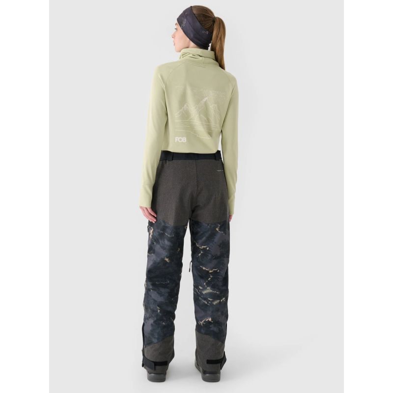 The 4F women's snowboard pants are a functional model designed for winter activities on the slopes. The NeoDry 10,000/8,000 membrane effectively protects against moderate snowfall and rain while providing optimal moisture management during intense activity. Lightweight polyester insulation ensures thermal comfort without excessive weight, and the regular fit allows for freedom of movement while snowboarding.