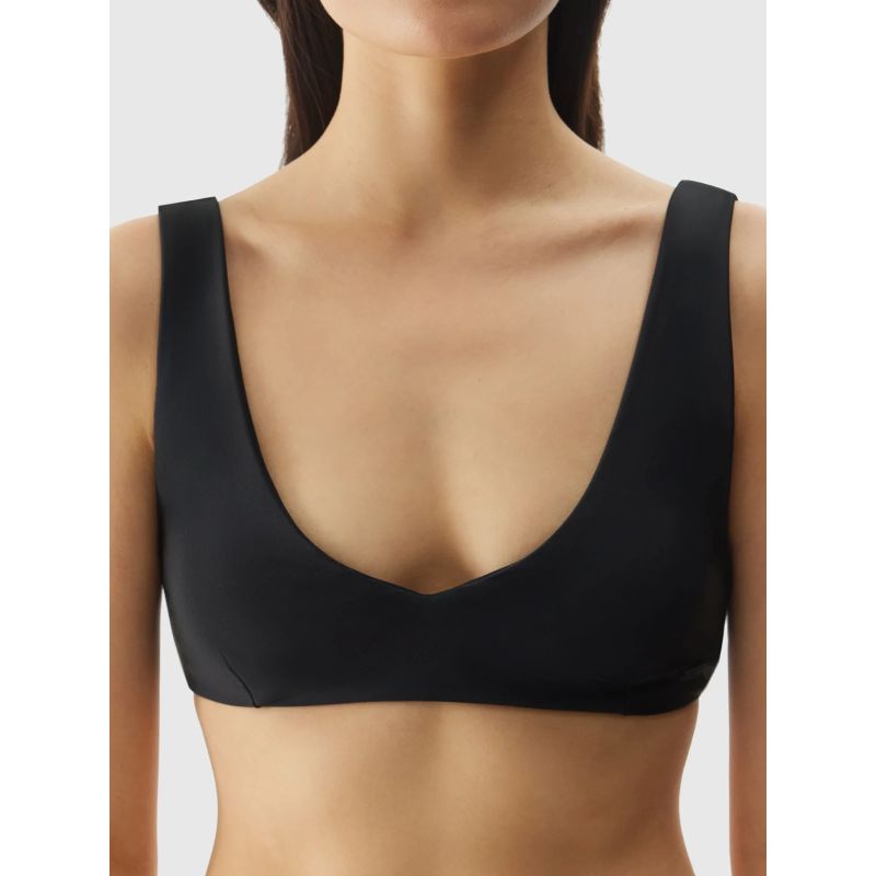 Experience ultimate comfort and unrestricted mobility with our women's bikini top, perfect for all your summer adventures, whether it's lounging on the beach or a refreshing dip. Made from high-quality synthetic material, this swimsuit and beachwear piece is durable and easy to care for. Luxuriously soft padding ensures a comfortable and modest fit. Stay dry and cool with quick-drying fibers that effectively wick away moisture. This balconette bikini top with bra-style straps features a flattering V-neckline and a secure, slip-on closure with a stylish metal buckle. Personalize your look with removable cup pads. Enjoy all-day comfort with wider, no-adjust straps. Complete your look with a chic neckline at the back.