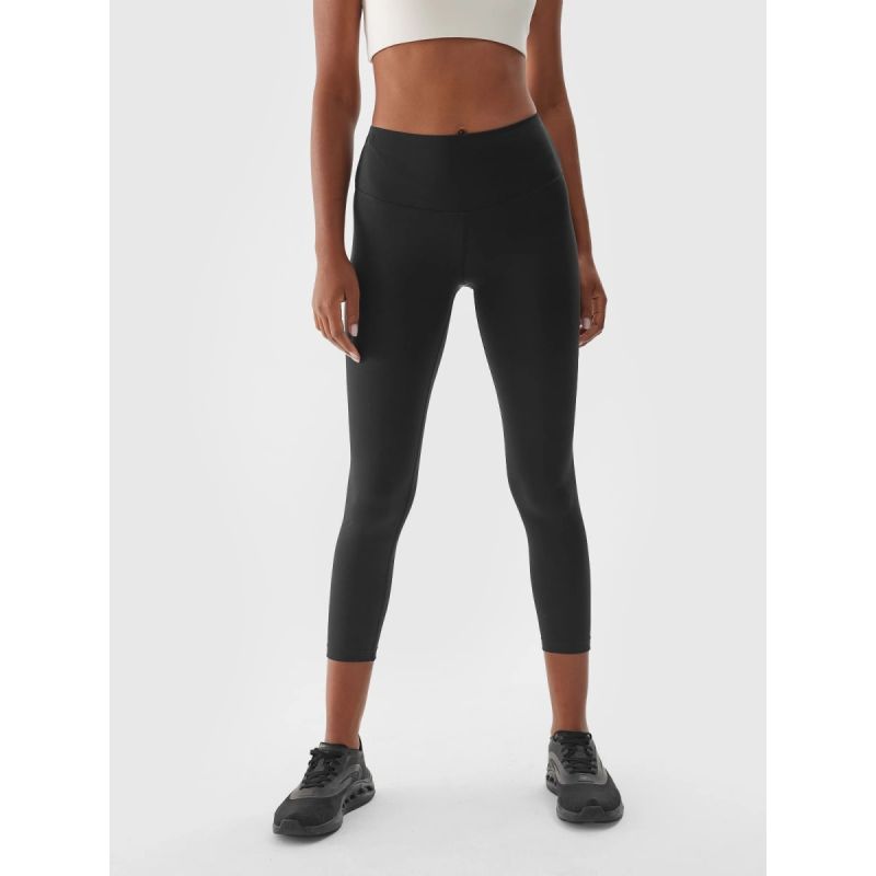 These women's sports fitness leggings are a functional base for training styles, designed for intense gym workouts, fitness classes, and everyday activities. Made from recycled fabric (82% recycled polyester) , they combine durability with environmental responsibility. The addition of 18% elastane makes them stretchy, flexible, and comfortably form-fitting. Quick-drying fibers in 4FDry technology effectively wick moisture away from the body, helping you stay dry and comfortable even during intense exercise. The high waist keeps the leggings in place and provides enhanced coverage, while the 7/8-length leggings fall below the ankles underscore the sporty character of the leggings. A practical hidden pocket at the waist allows you to store small items like keys without affecting your comfort. The non-adjustable elastic waistband ensures a comfortable, pressure-free fit.