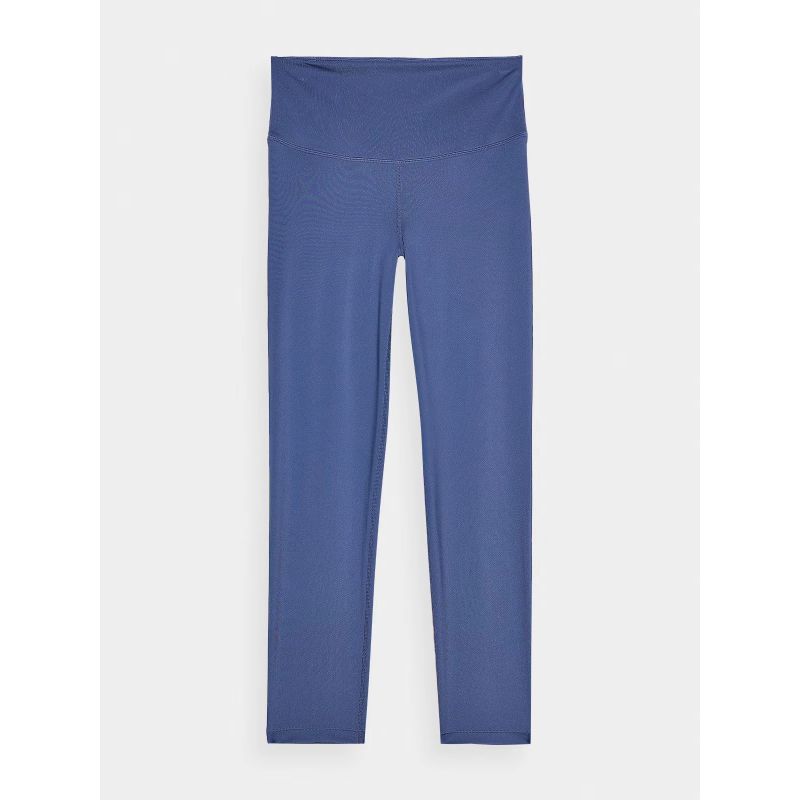 These women's fitness sports leggings are made of recycled material—82% recycled polyester, as certified by independent certification bodies or licenses. Thanks to the addition of 18% elastane, they are stretchy and comfortably fit the body. These women's 4F gym leggings feature quick-drying fibers with 4FDry technology, which wick moisture away from the body. A hidden pocket at the waistband holds essentials like keys. The elastic waistband is non-adjustable.
