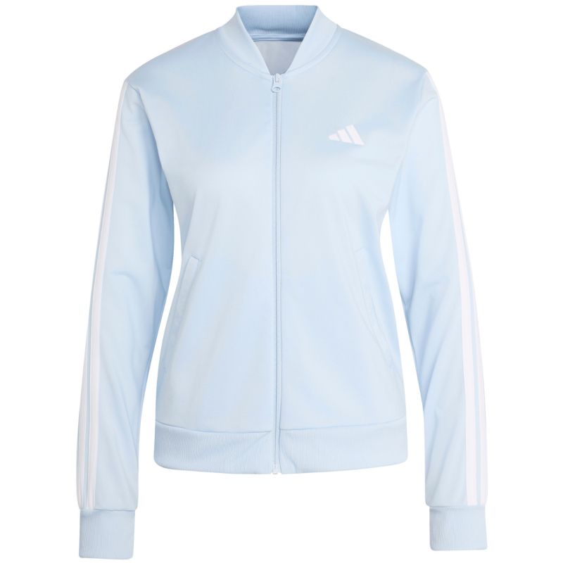 Women's adidas Dayready Tracksuit Blue KB8165 This women's adidas tracksuit will provide the best comfort during sports activities and moments of blissful relaxation. Quick-drying material made from recycled fibers. Specifications: · Material: 100% recycled polyester · Regular fit with a mid-rise waist · Full-length zipper and stand-up collar · Front pockets on both pants and jacket · Ribbed cuffs and hem · Elastic waist with drawstring