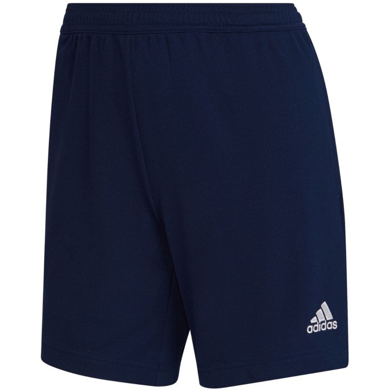 adidas Entrada 22 Women's Shorts Navy Blue HI0004. These women's shorts are perfect for training. Aeroready technology absorbs moisture. Quick-drying material. Embroidered logo. Elastic waist. Internal drawstring. Entrada 22 Collection. Material: 100% recycled polyester
