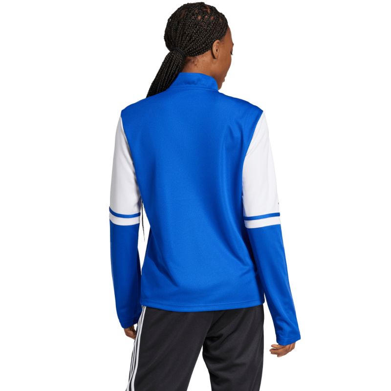 Women's adidas Squadra 25 Training Top Blue JD3019. This adidas women's sweatshirt is perfect for training. Standard fit. Quick-drying fabric with Aeroready technology wicks away excess moisture. The mid-chest zipper ends with a chin guard. Stand-up collar. Small logo. Stripes on some sleeves. This product is made of high-quality recycled materials. Material: 100% recycled polyester