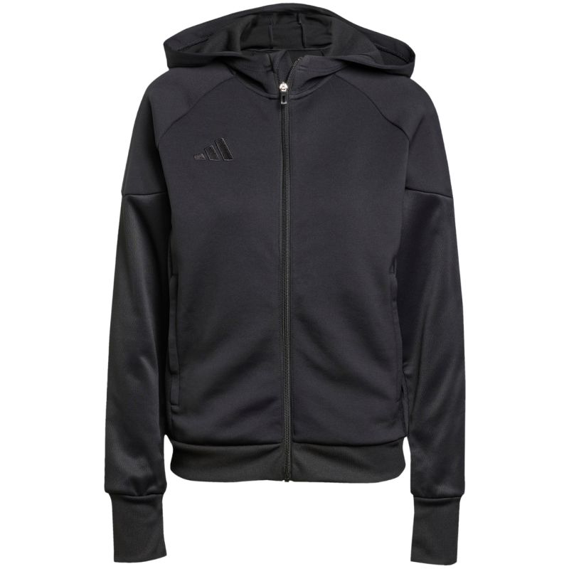 adidas Tiro 25 Hoodie Full-Zip Women's Sweatshirt Black JD9079 This adidas women's sweatshirt will keep you comfortable off the pitch. This football-inspired design features soft, fleece-like fabric with Aeroready technology that helps wick away moisture. A full, one-way zipper with a protective flap. A standard fit with ribbed cuffs. A roomy, non-adjustable hood. Front zip pockets. This product is made from 100% recycled materials. Specifications: Material: 100% recycled polyester Standard fit Full-zip with hood Aeroready Front zip pockets Ribbed hem and cuffs