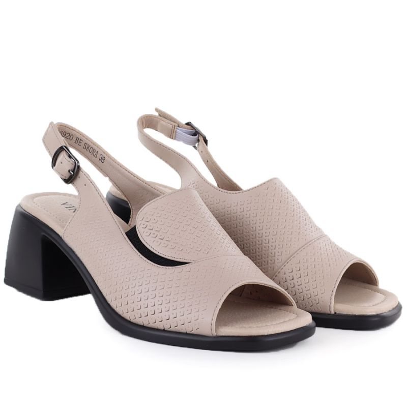 Women's beige leather high-heeled sandals Vinceza 26-66920