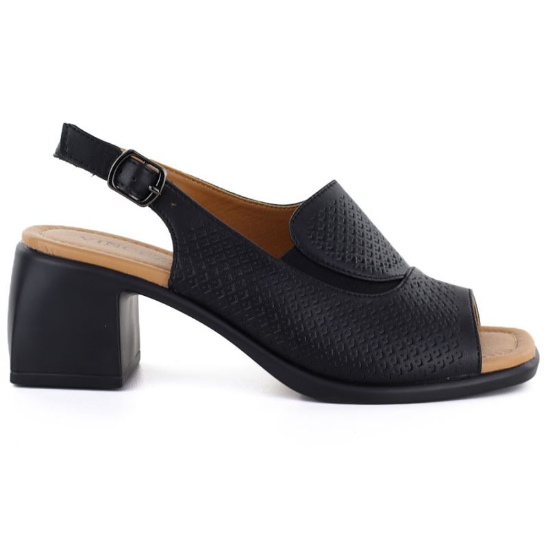 Women's black leather high-heeled sandals Vinceza 26-66920