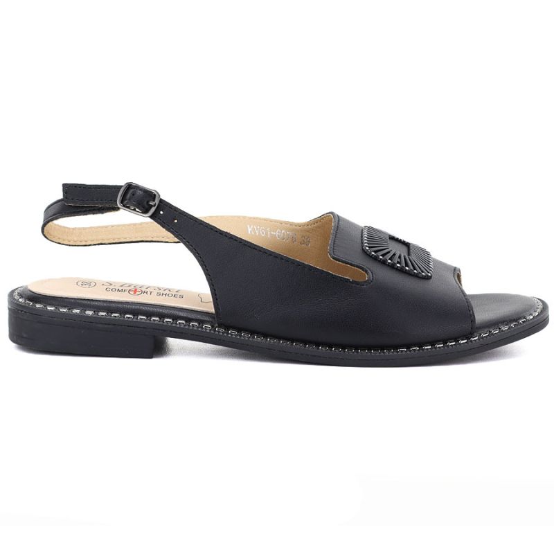 Women's black leather sandals S.Barski KV61-6076