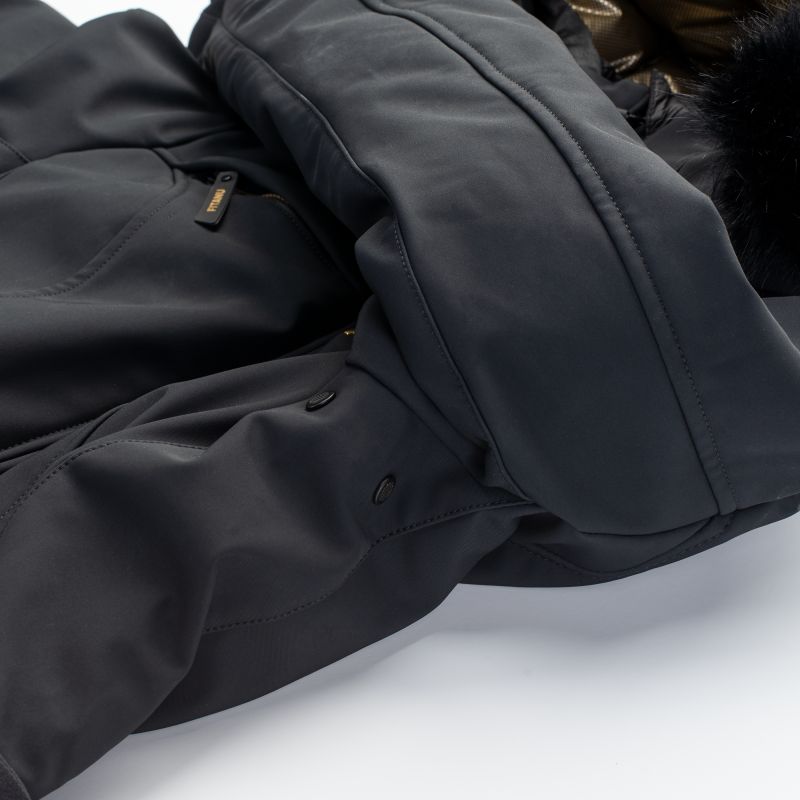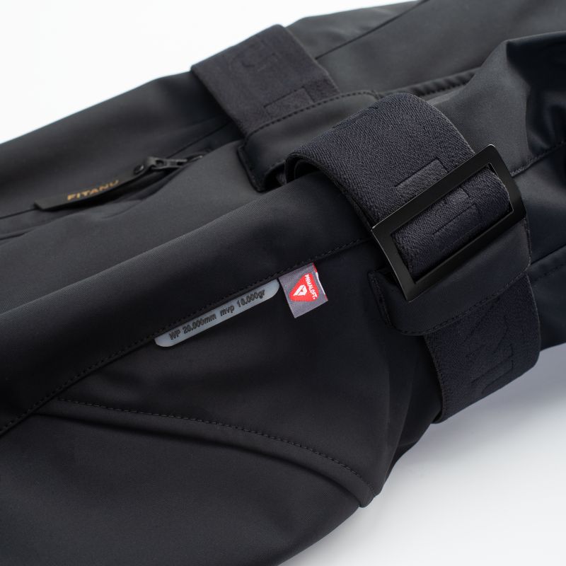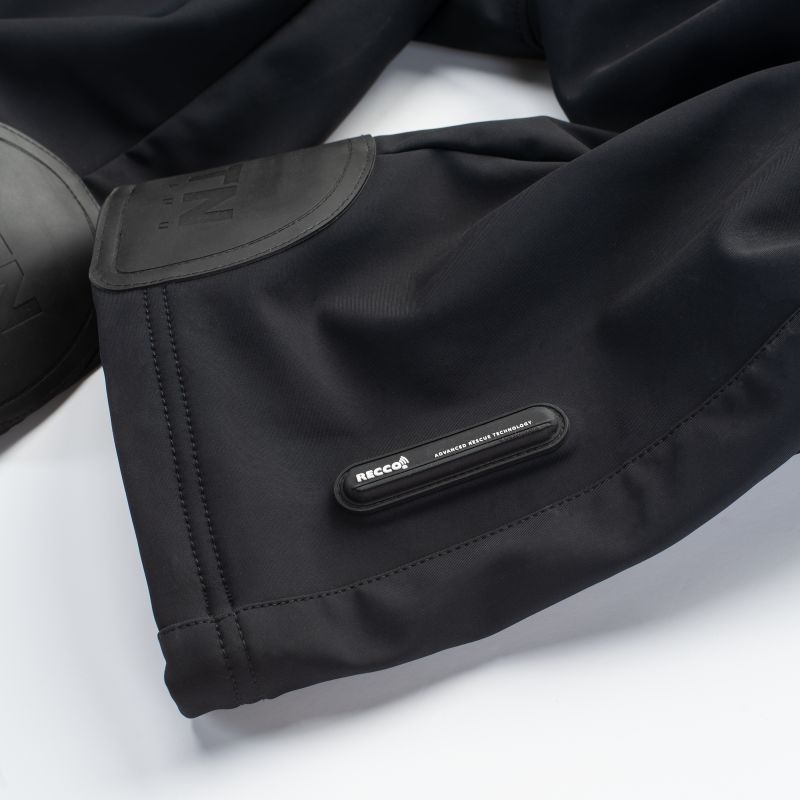 SUIT SIZE: XS-L MATERIAL COMPOSITION: OUTER MATERIAL: 77% NYLON, 23% ELASTANE, 380 g LINING: 100% NYLON FILLING: BODY/SLEEVE: 100% PRIMALOFT BLACK RISE 80 g HOOD/COLLAR: 90/10 GREY DUCK DOWN SPECIFICATIONS: – WATER RESISTANCE: 20,000 mm H₂O – BREATHABILITY: 10,000 g/m²/24h – RECCO SYSTEM – DWR COATING – SBS® ZIPPER