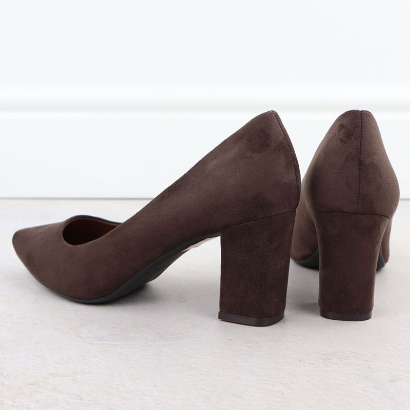 Women's chocolate suede pumps with a block heel Sergio Leone PB414